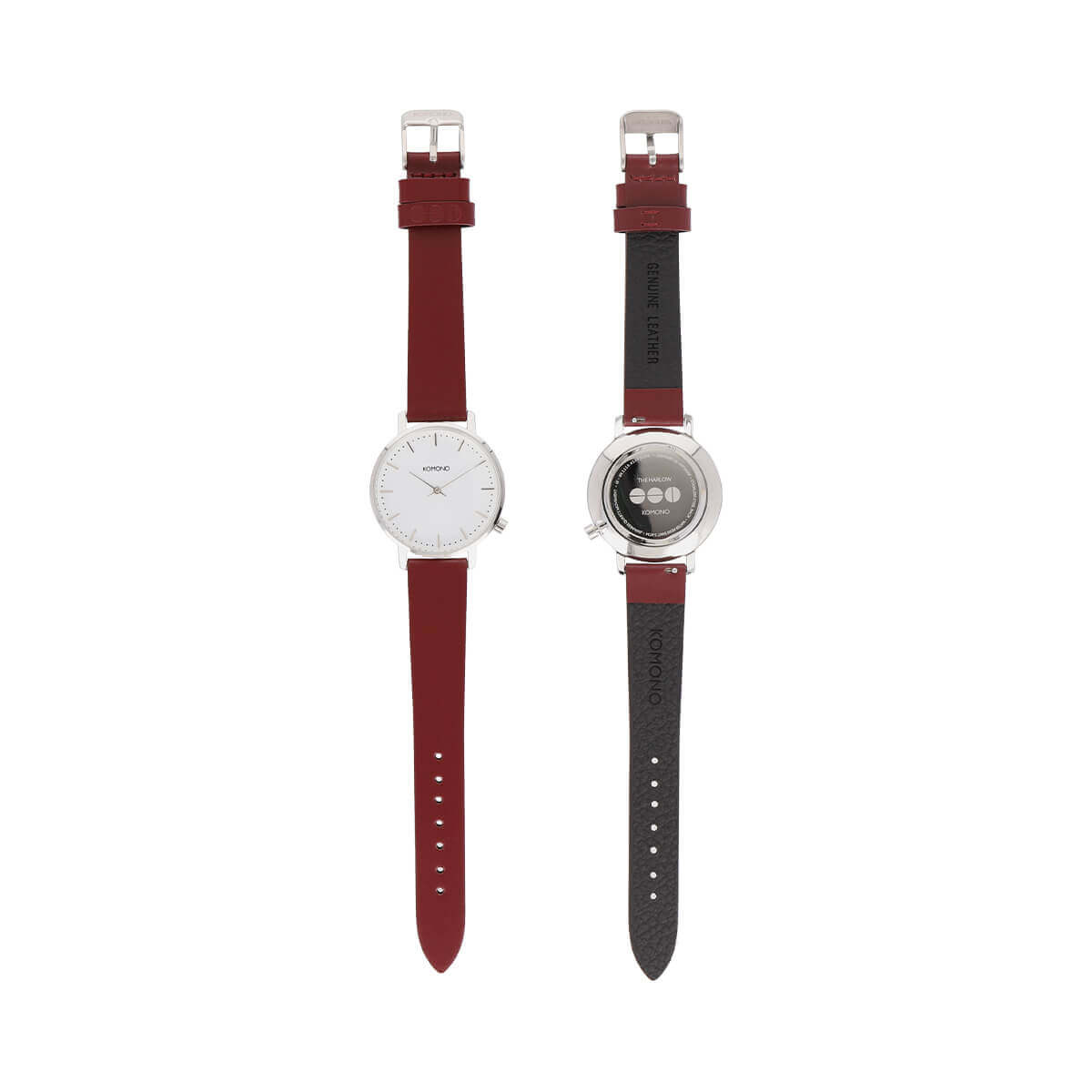「FOR HER」には、36mmのホワイト文字盤×シルバーケースのHARLOW(ハロウ)をセット。付属するレザーベルトは、クールで凛とした女性を彷彿させるブラックと、女性特有の柔らかさや色気を醸し出すバーガンディーの2カラーを用意。その日の気分で、なりたい自分を演出させてくれる。
