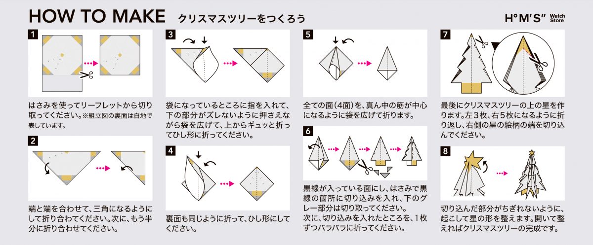 私たちは皆様に世界中の腕時計をご提供するだけではなく、素敵な時間もお届けできたらという想いで、この "おりがみクリスマスツリー"をつくりました。
