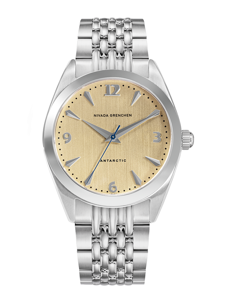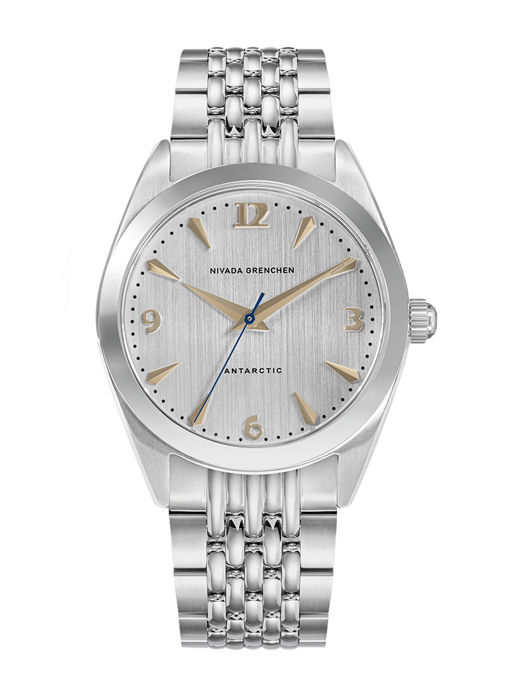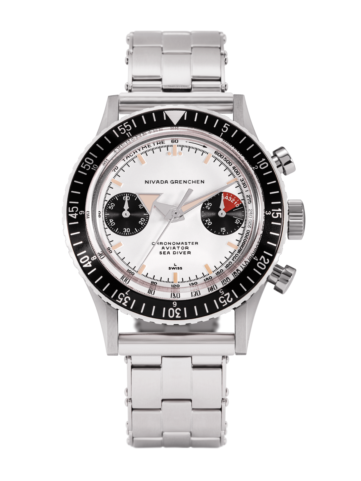 ニバダ・グレンヒェンは 1879 年に"ヤコブ・シュナイダー"によって設立されたスイスの時計ブランドで実用時計を得意とし、数々の名作を世に送り出してきた古豪である。1950 年代に発表された「アンタークティック」は 55 年から 56 年にかけて南極探検のミッションにも採用され、過酷な環境下の使用にも耐えうる信頼の高い腕時計として世界的地位を確固たるものとした。その後、1963 年には 200M防水と高い防水機能を備えたクロノグラフ「クロノマスター」を発表。この勢いで躍進を続けるかと思われたが、1970 年代のクオーツショックの煽りを受け、1980年代に1度はその歩みを止めることとなる。
