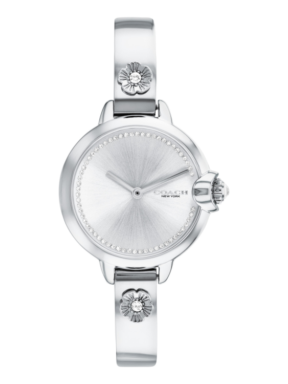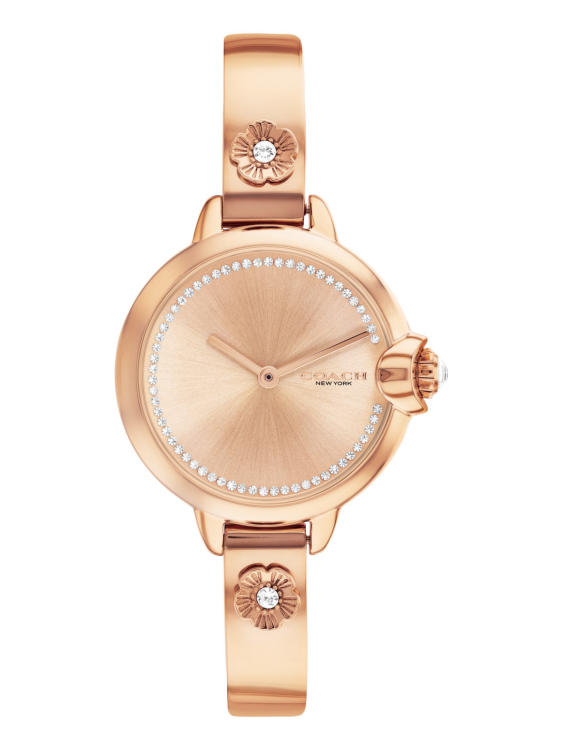 "アーデン"は、ステンレスのベルトに飾られたティーローズのモチーフと、コーチのアイコニックなCチャームのクラウンが特徴のコレクション。今回の新作ではシルバー・ゴールド・ローズゴールドの3カラーが登場し、アクセサリー感覚で着用しやすいシンプルで華やかなデザインが魅力のひとつ。