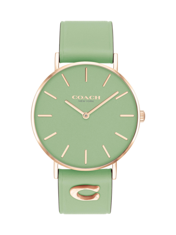 ニューヨーク市のウエストビレッジの静かな通りにちなん名付けられた"ペリー"は、ラウンドケースにバーインデックスを採用したシンプルなデザインが特徴。カラフルな文字盤・レザーベルトが新作としてラインナップ。グリーンやコーラル、パープルカラーのレザーベルトにはCチャームを配しライトブラウンのレザーにはトブラウンのレザーベルトにはレインボーのCチャームを文字盤半面にデザインした個性的なモデルも登場する。