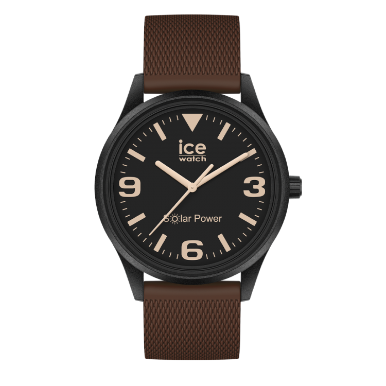 地球に優しい電池交換不要のエコなソーラー充電ムーブメントを搭載した「アイス ソーラーパワー」コレクションからは、「アイス クロノ」の新作とカラーリングを合わせたラインナップで登場。パーツに金属を使用していないため肌にも優しいモデル。