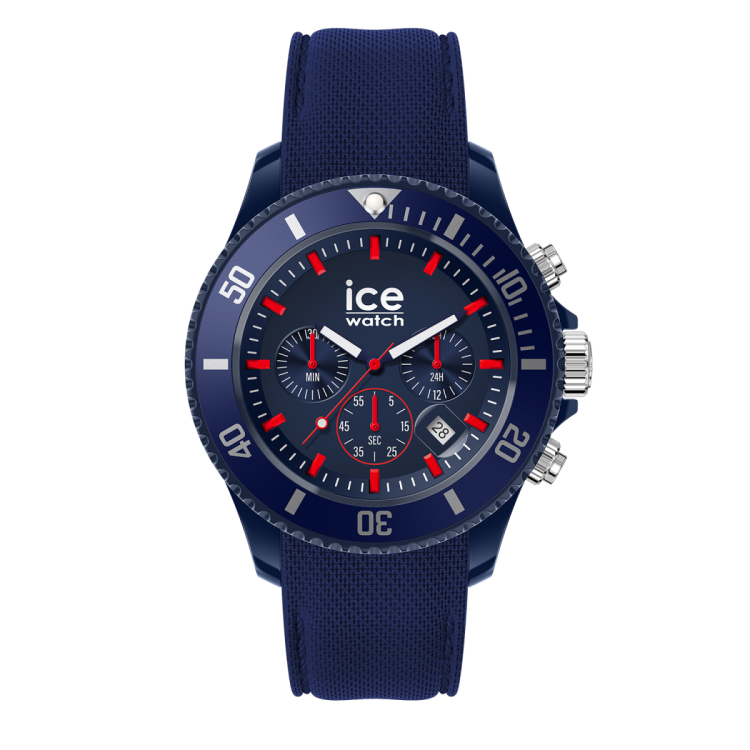 シリコンラバーベルトとバイオマスプラスチックのケースで軽やかな着け心地を実現。マットなカラーリングでどんなコーディネートにも相性は抜群。ベルトのステッチな細かな配色にまで拘った、ケース径44mmのビックフェイスでカジュアルなクロノグラフモデル。「ダークブルーレッド」はアイスウォッチストア限定販売。機能は24時間表記、30分計、60秒計。