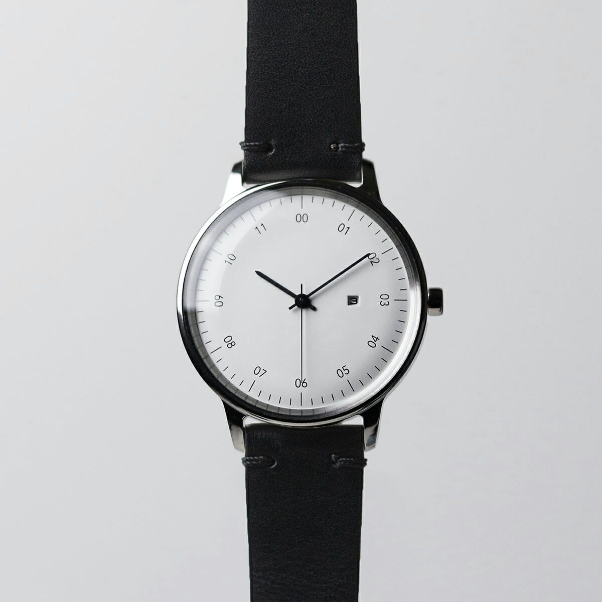 sazare / さざれ SK02 SS シルバー ミラー フィニッシュ ホワイトダイヤル ブラック コードバン レザー
