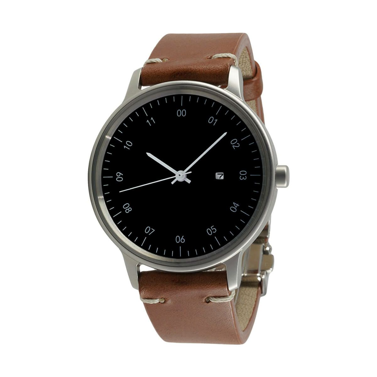sazare / さざれ SK01 SS シルバー ホーニング フィニッシュ ブラック ダイヤル /シルバー D バックル ライトブラウン ブッテーロレザー