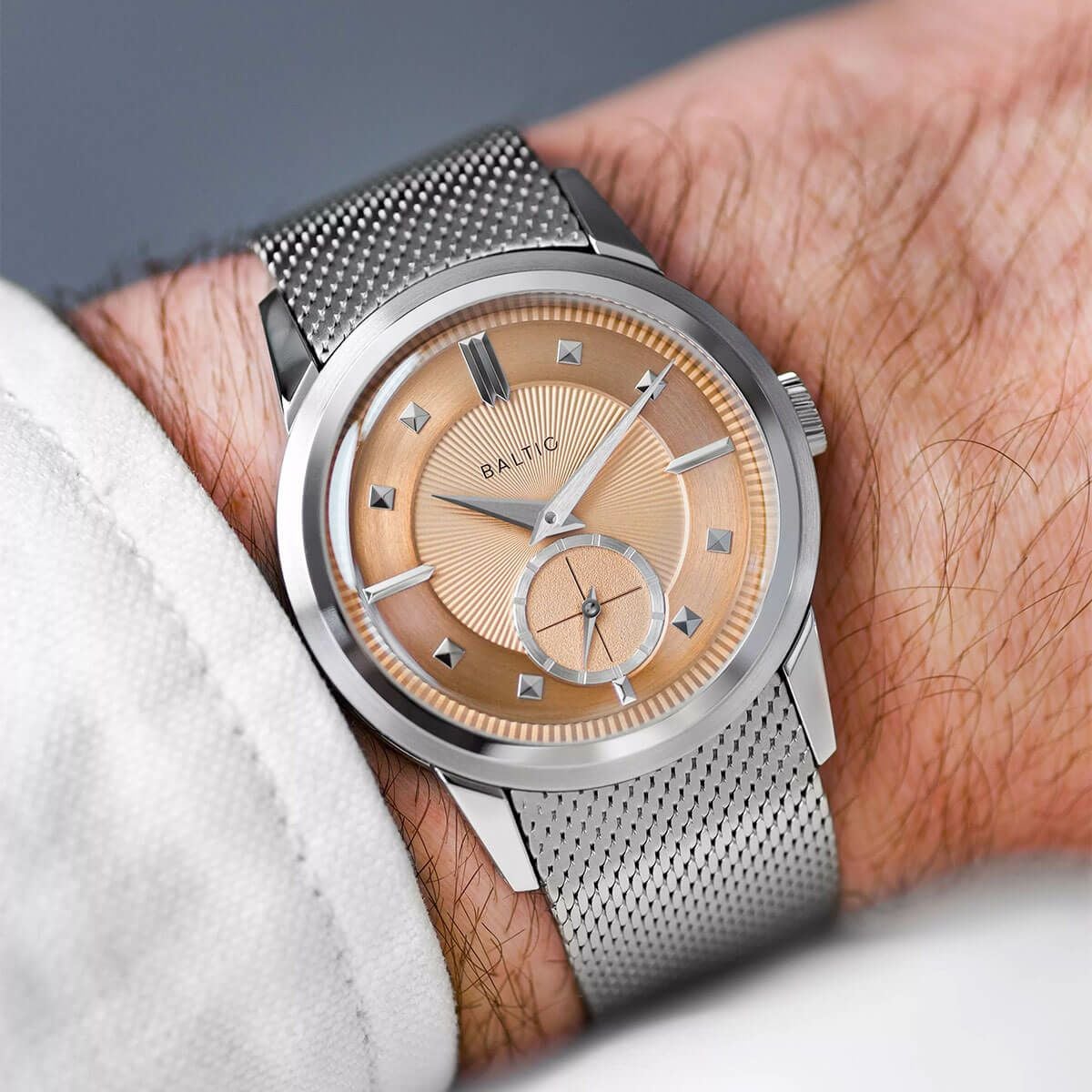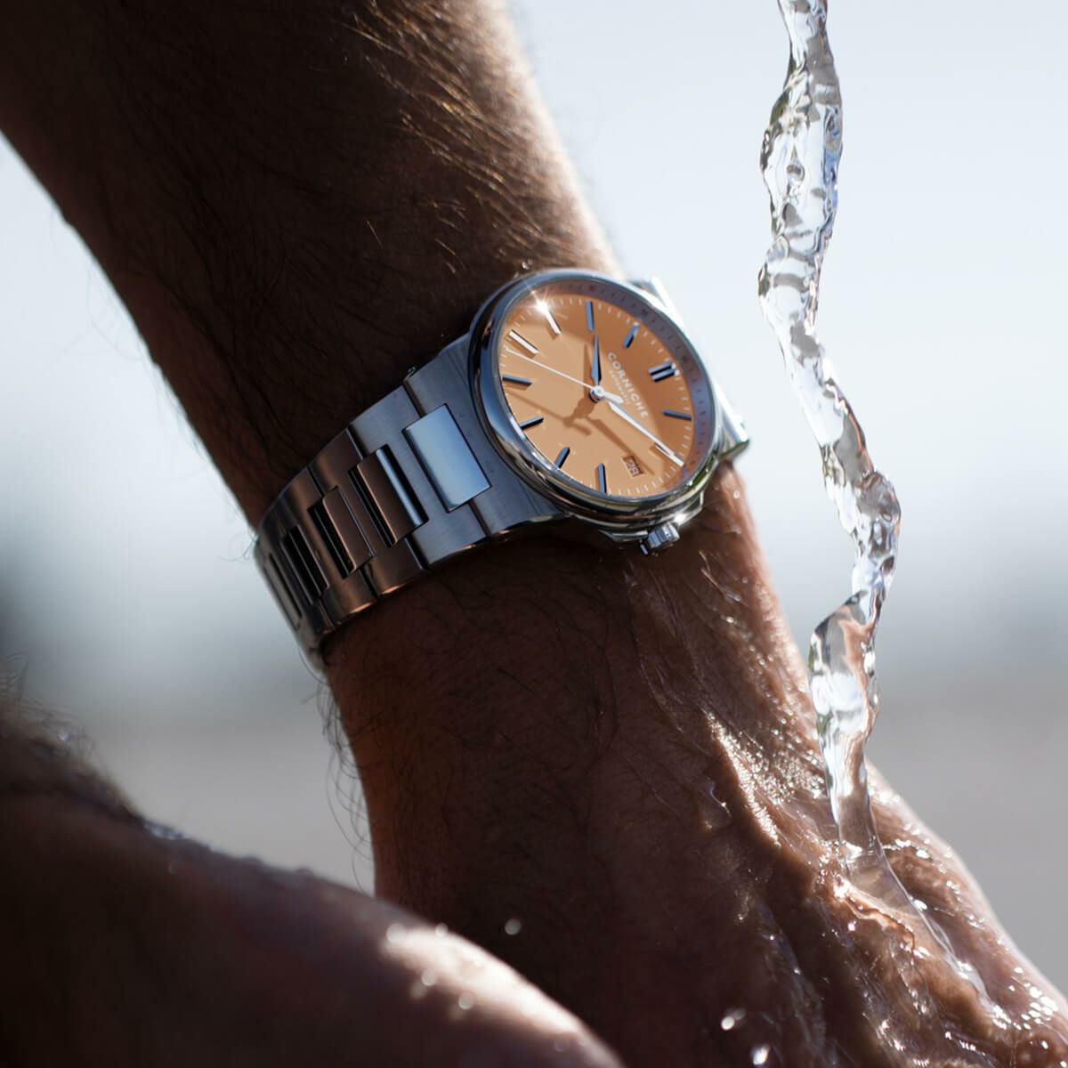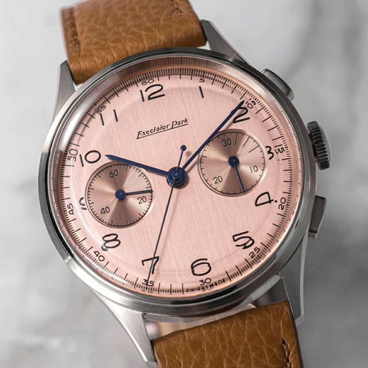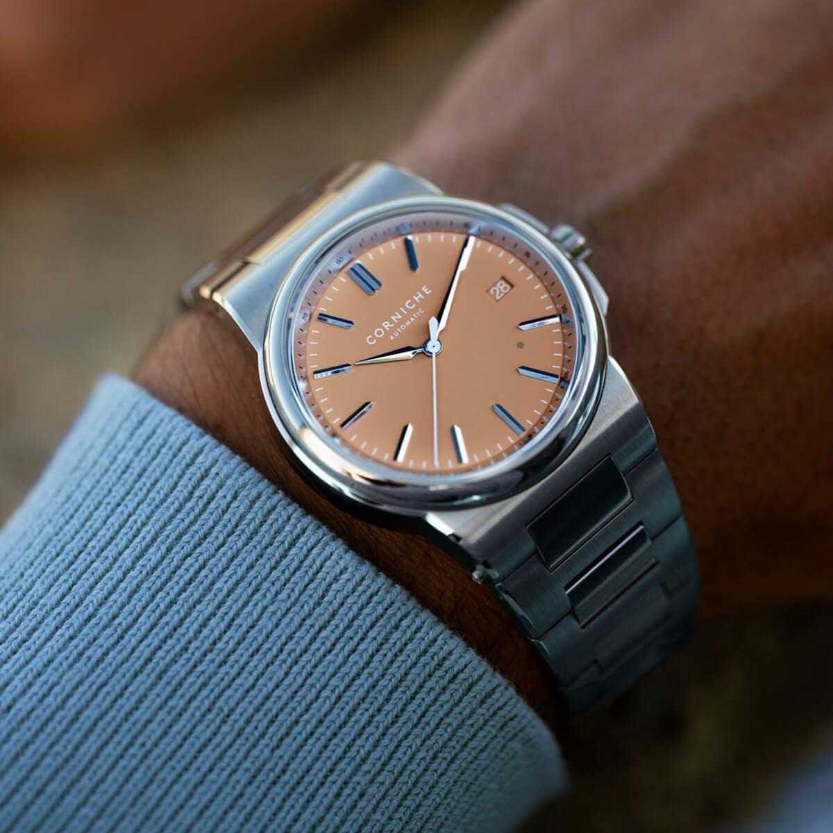 NEW 限定 他の画像を見る 【世界限定250本】Corniche Watches / コーニッシュ ヘリテージ ミラージュ クロノグラフ シルバー サーモン ブラックレザー ¥ 97,900 税込 販売期間 2026/02/23 12:00 〜