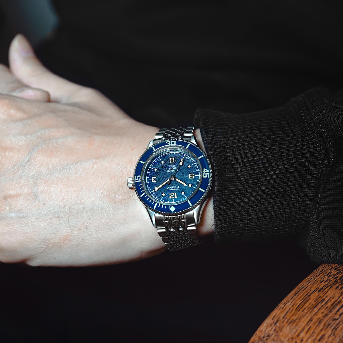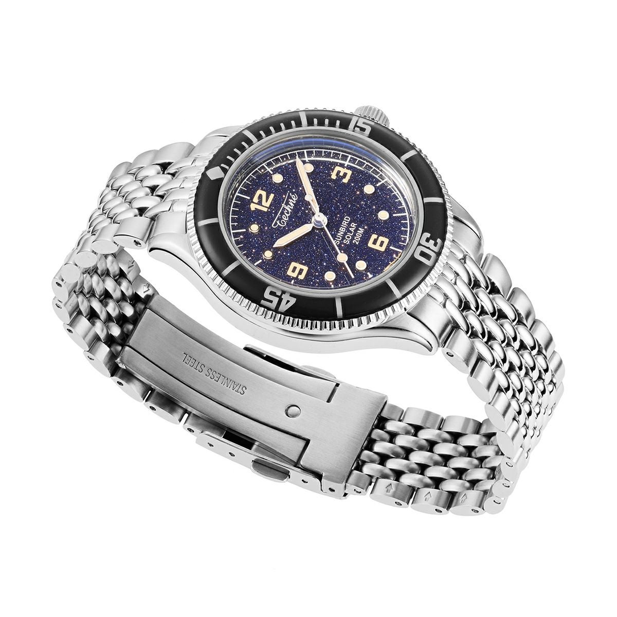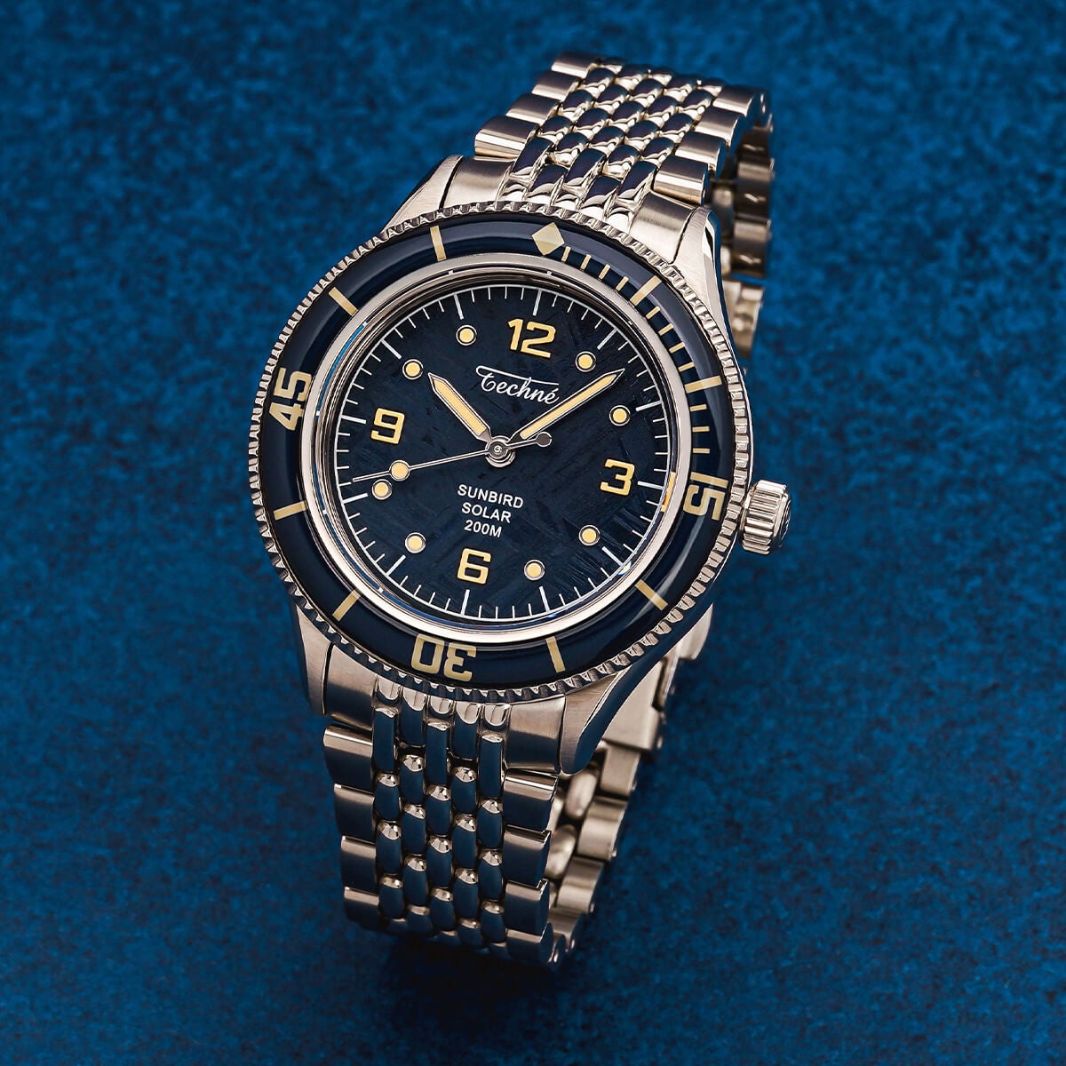 NEW 限定 他の画像を見る TECHNE / テクネ マリーンオフショア ソーラー メテオライトネイビーブルー ブルーベゼル 5ライスブレス 3H ¥ 74,800 税込 販売期間 2026/02/20 12:00 〜