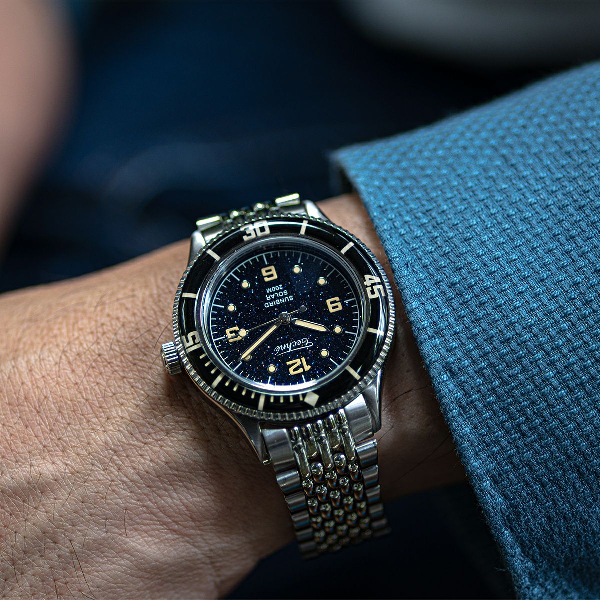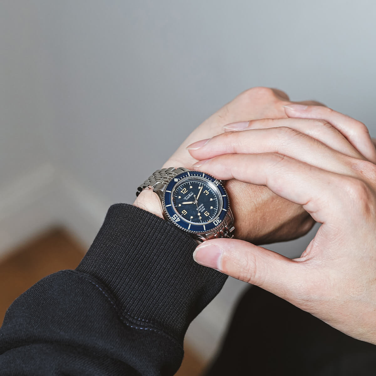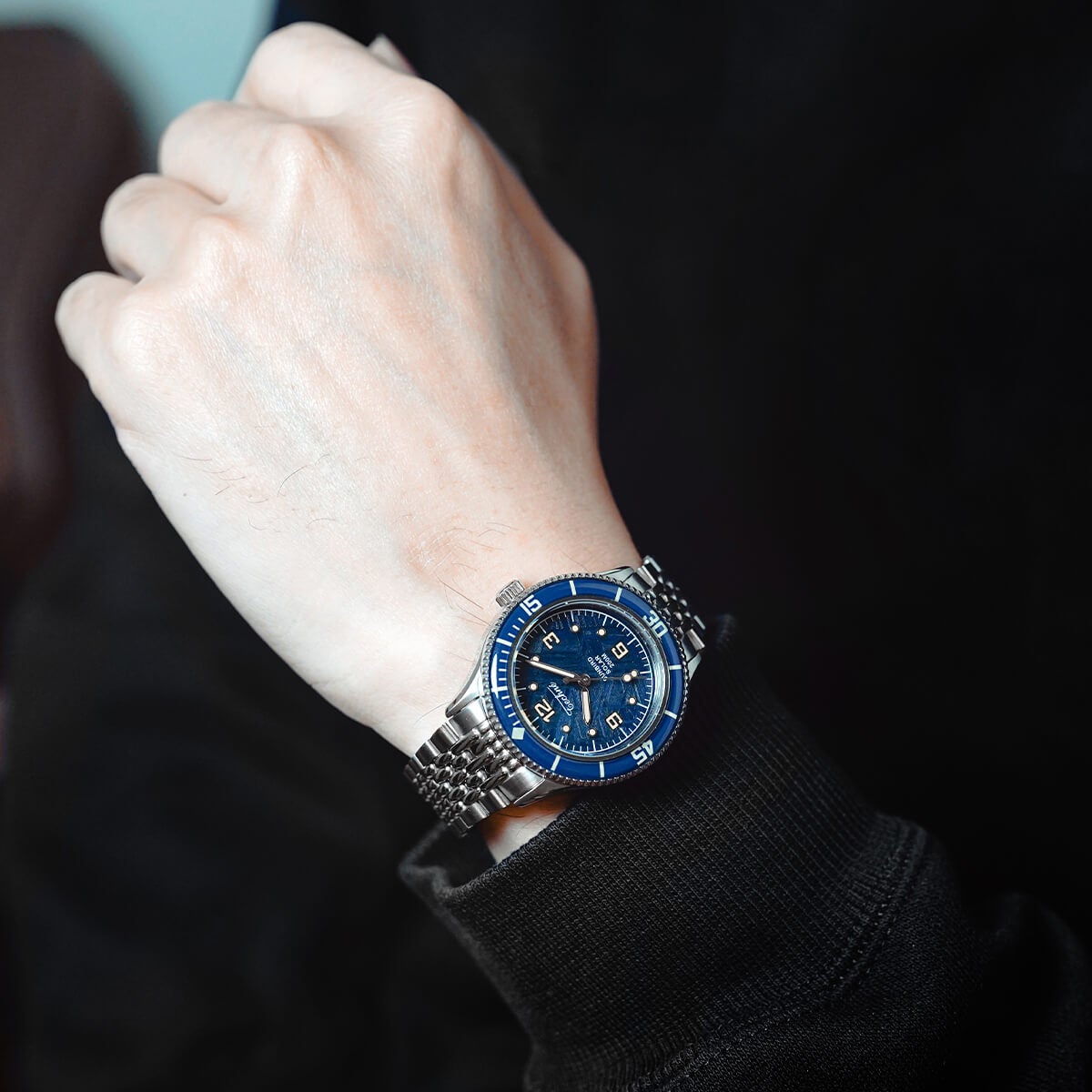 NEW 限定 他の画像を見る TECHNE / テクネ マリーンオフショア ソーラー メテオライトネイビーブルー ブルーベゼル 5ライスブレス 3H ¥ 74,800 税込 販売期間 2026/02/20 12:00 〜