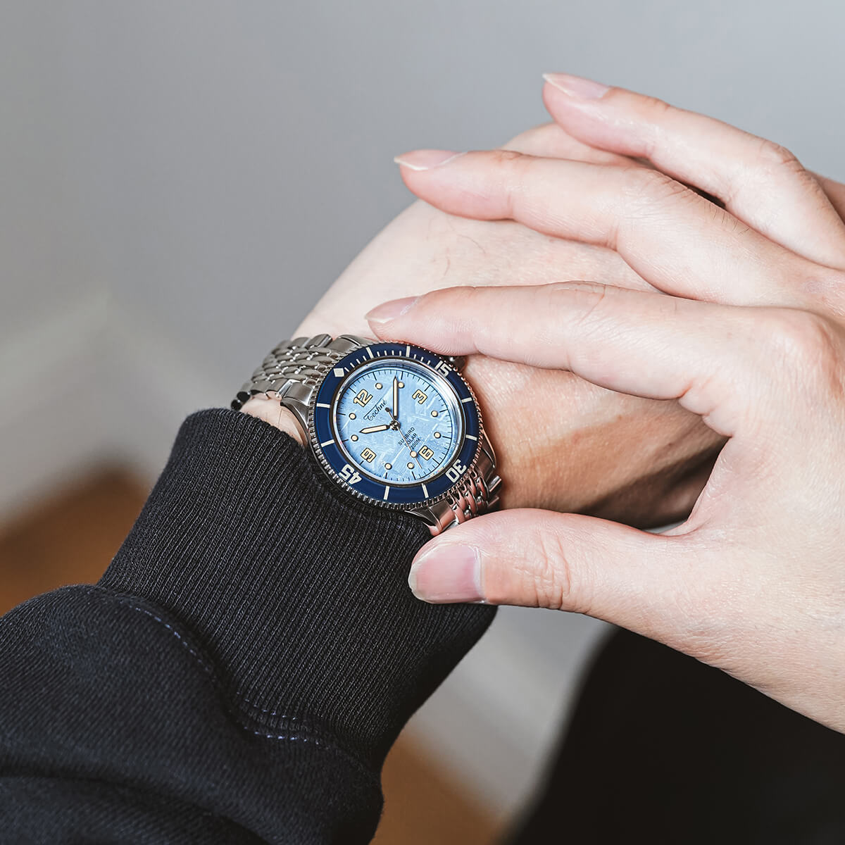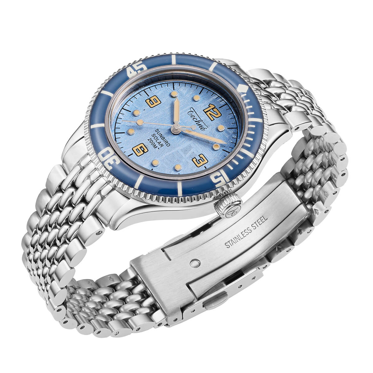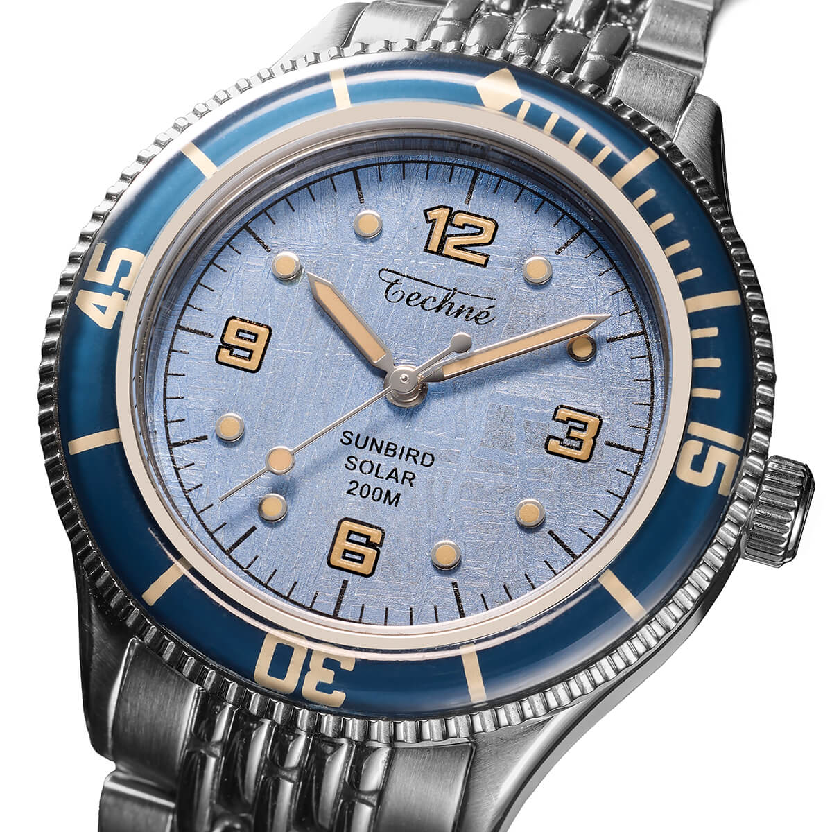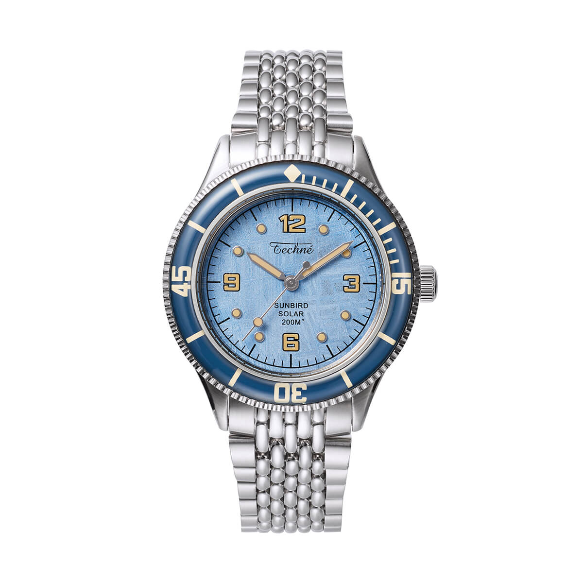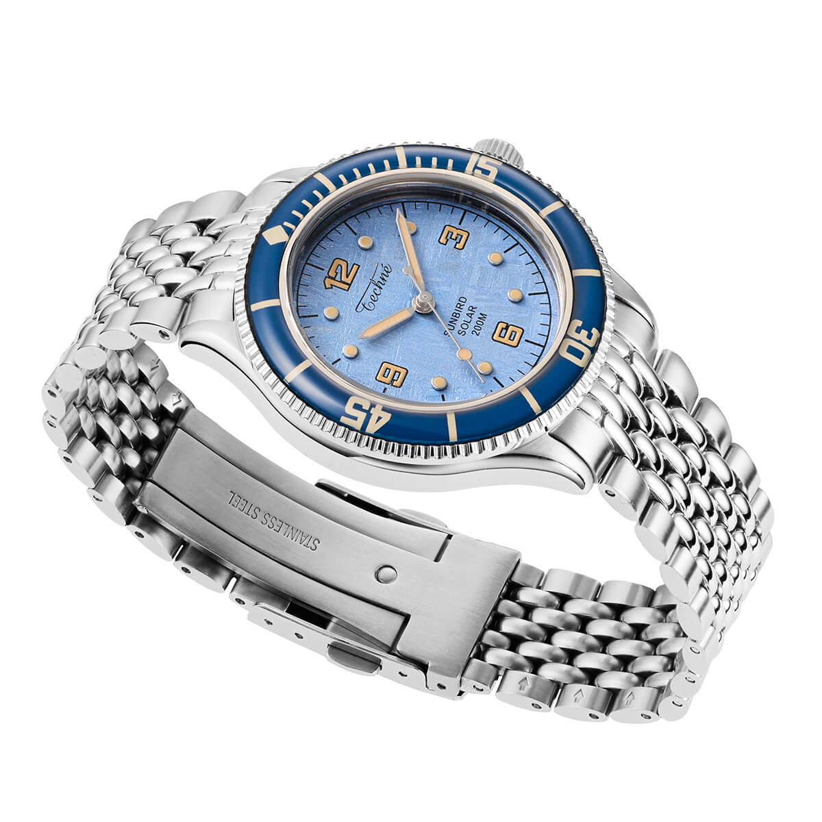 NEW 限定 他の画像を見る TECHNE / テクネ マリーンオフショア ソーラー メテオライトスカイブルー ブルーベゼル 5ライスブレス 3H ¥ 74,800 税込 販売期間 2026/02/20 12:00 〜
