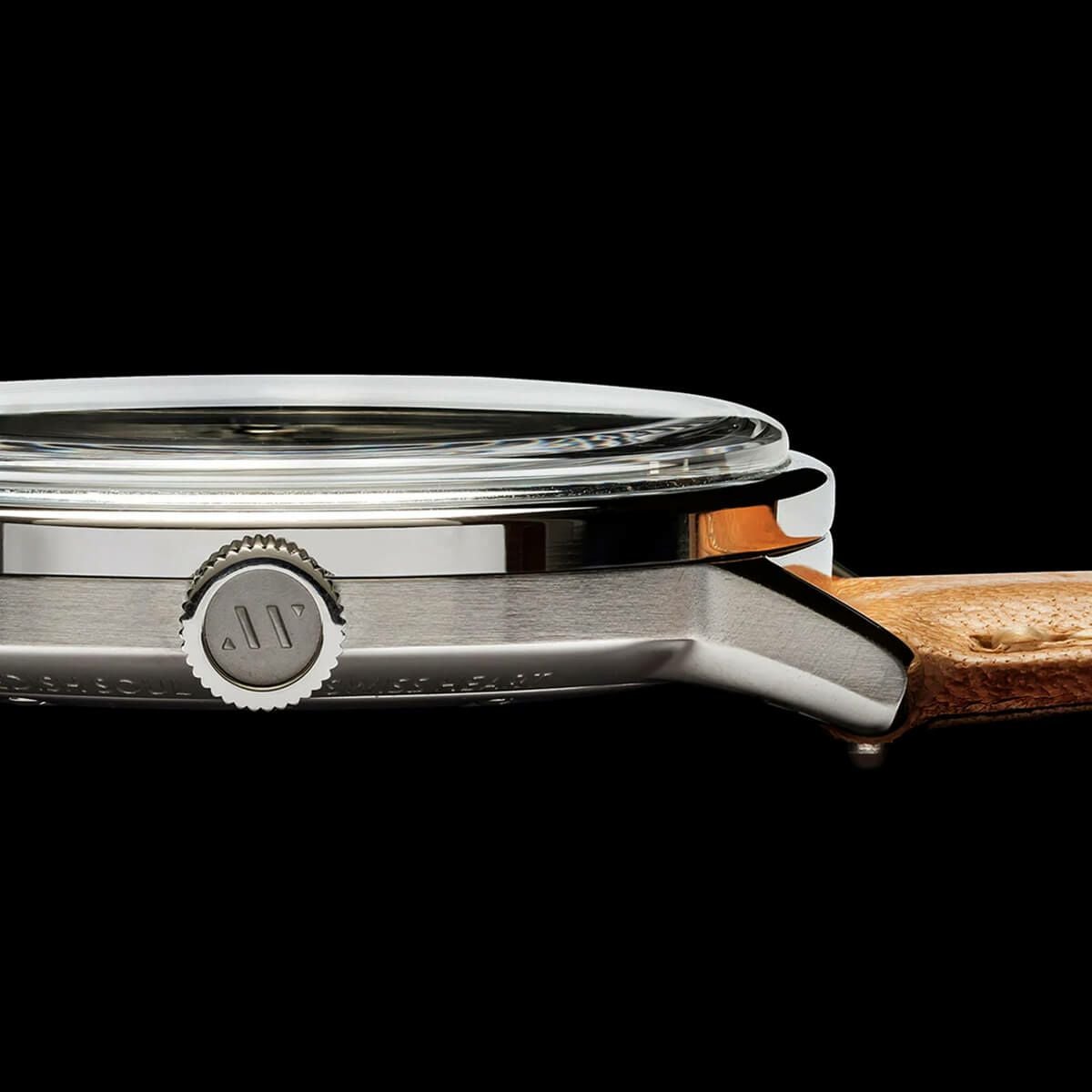 Sold out. 他の画像を見る BRAVUR / ブラヴァ Scandinavia Sparkling White dial Brown edge seam leather sapphire back ¥ 272,800 税込