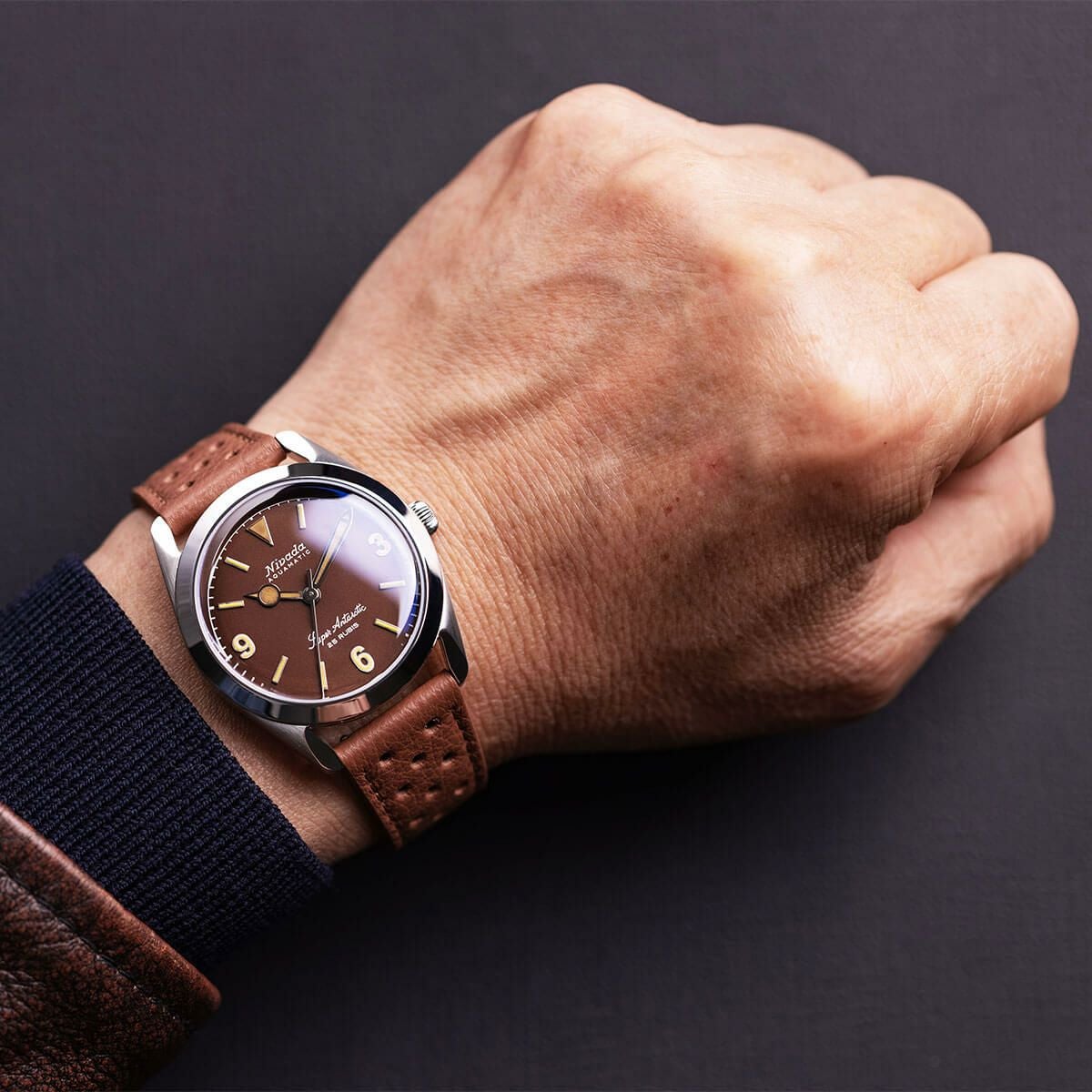Sold out. 他の画像を見る Nivada Grenchen / ニバダ グレンヒェン スーパーアンタークティック 3.6.9 ブラウン ノーヴィンテージ エフェクト ベージュ ルミナス ブラウン レザー レーシング ストラップ ¥ 181,500 税込