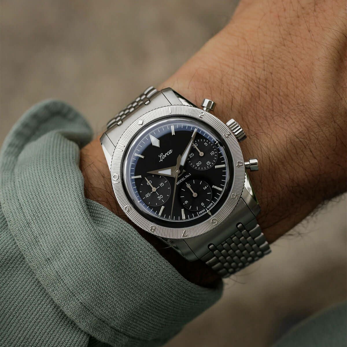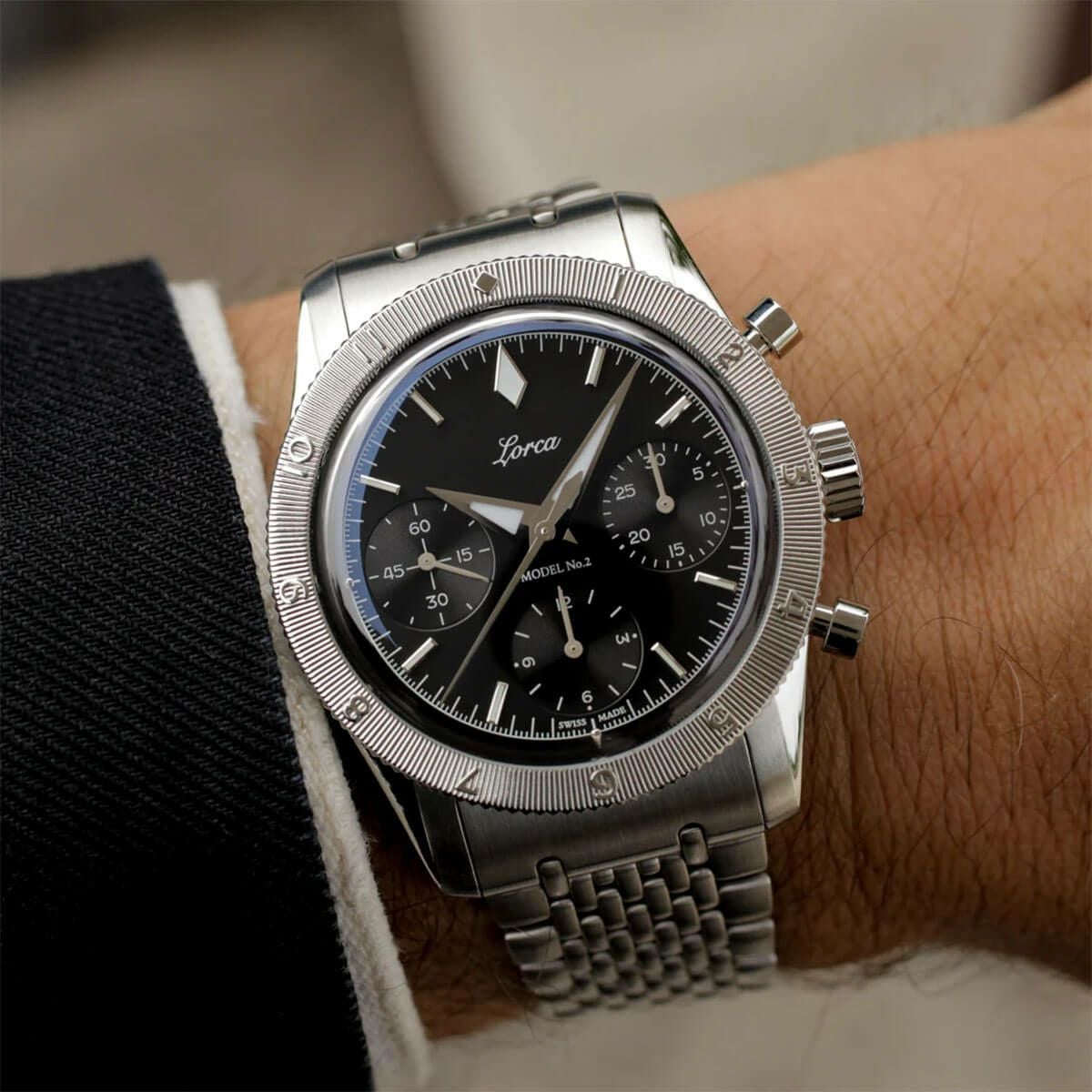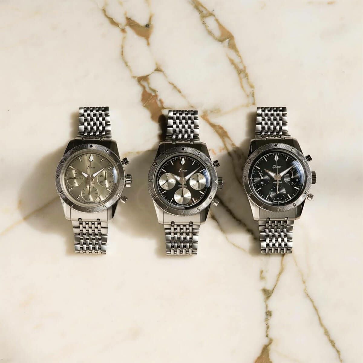 Sold out. 他の画像を見る Nivada Grenchen / ニバダ グレンヒェン クロノキング メカクォーツ 5カラー インターベゼル GMT セット ブラックテクスチャー レーシング レザー ストラップ ¥ 121,000 税込
