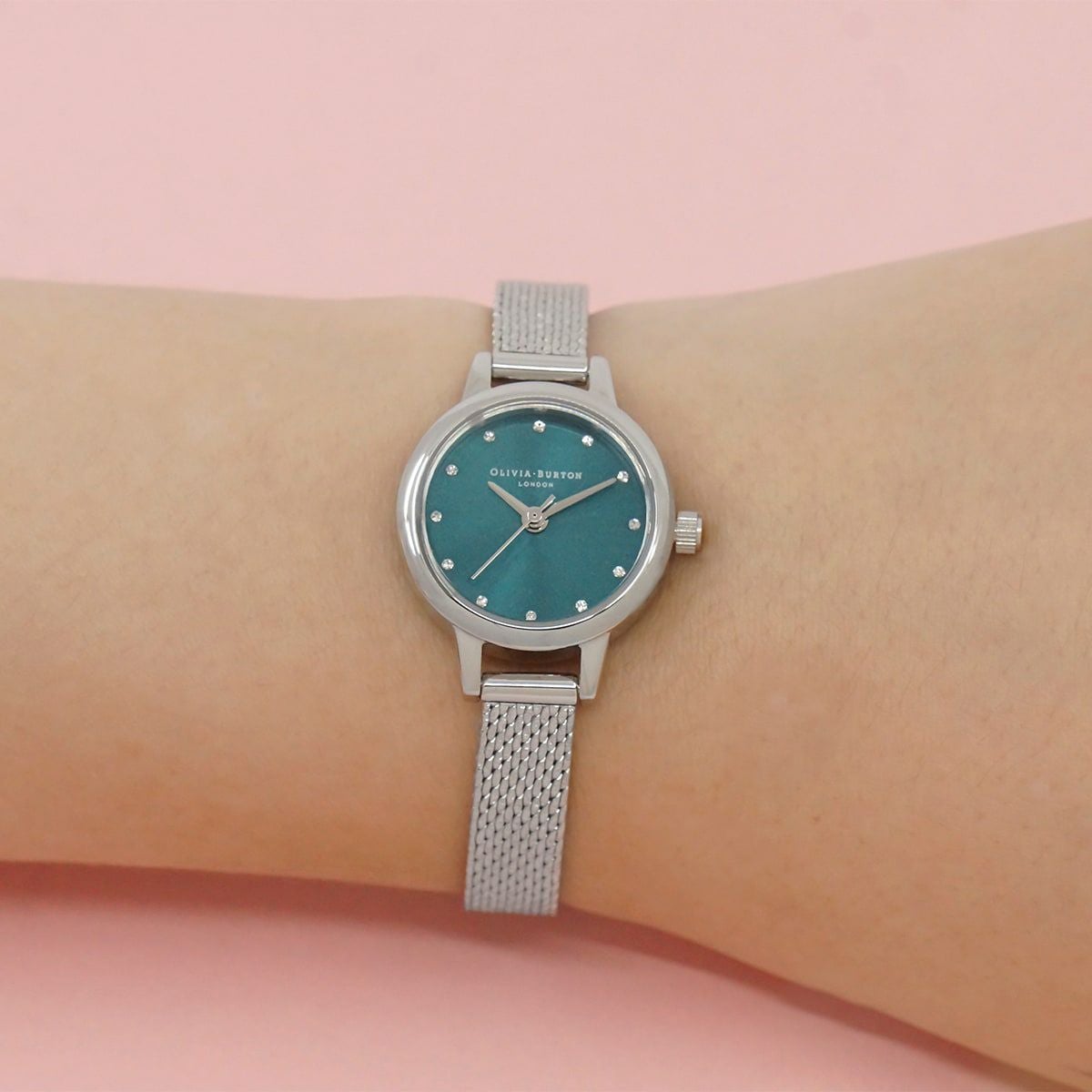 OLIVIA BURTON / オリビア・バートン クラシックス ミニ ダイヤル ティール サンレイ シルバーブークレメッシュ
