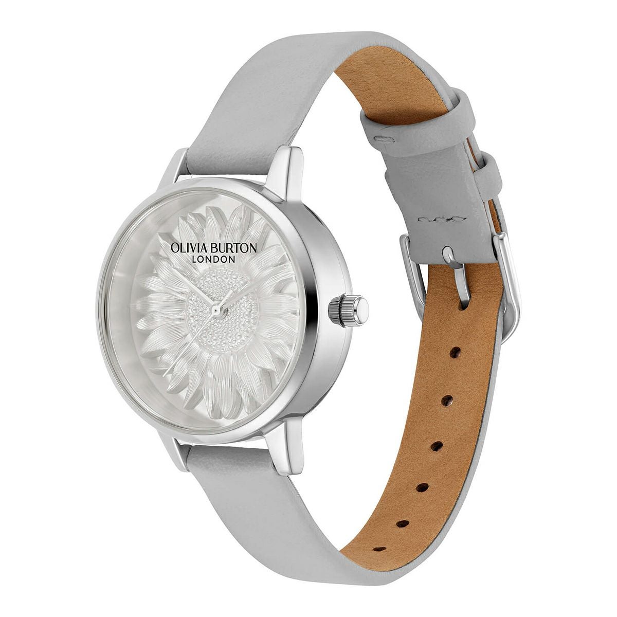 OLIVIA BURTON / オリビア・バートン 3D フラワー ミディ シルバー ホワイト アールグレイ レザー