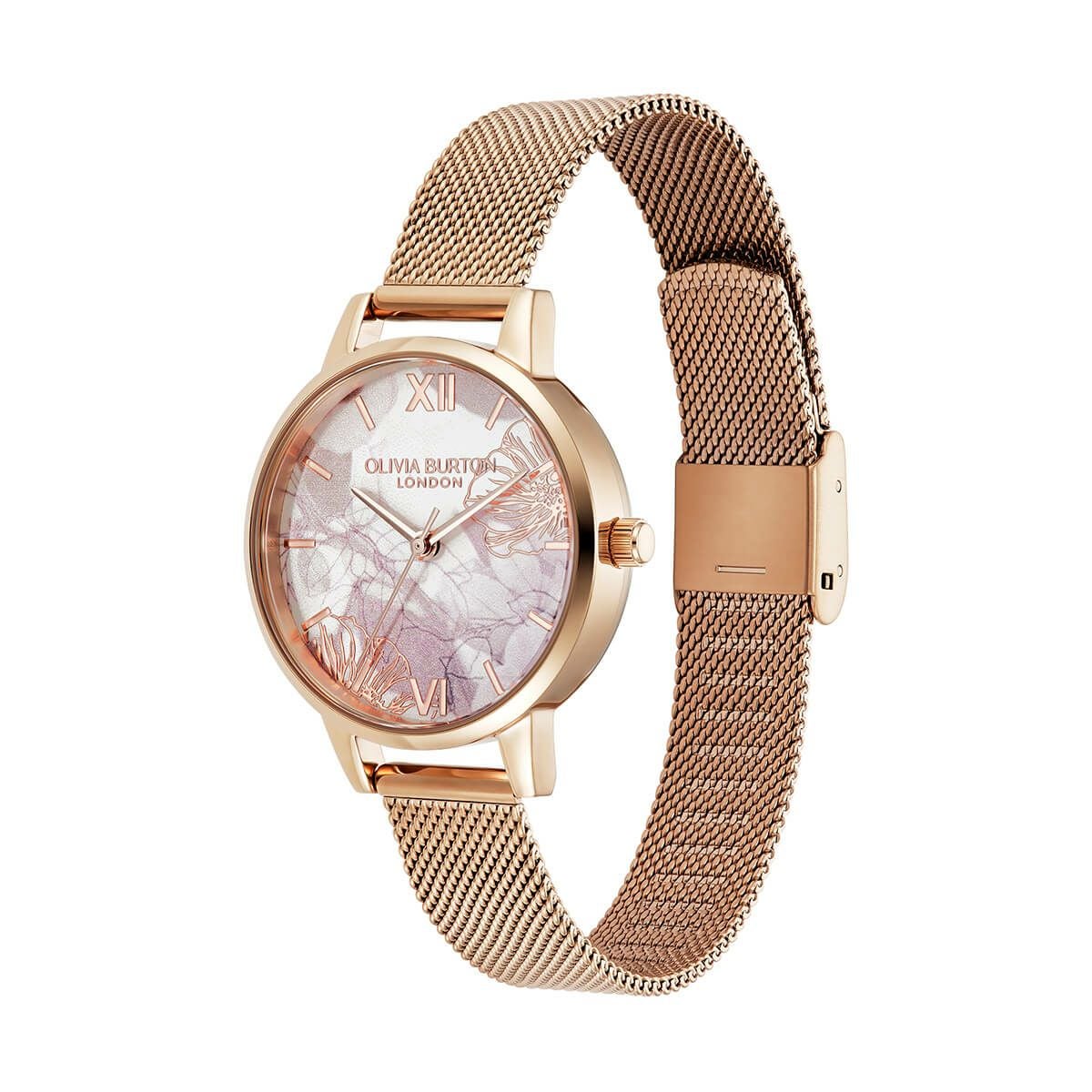 OLIVIA BURTON / オリビア・バートン シグネチャー ミディアブストラクトフローラル ローズゴールド メッシュ