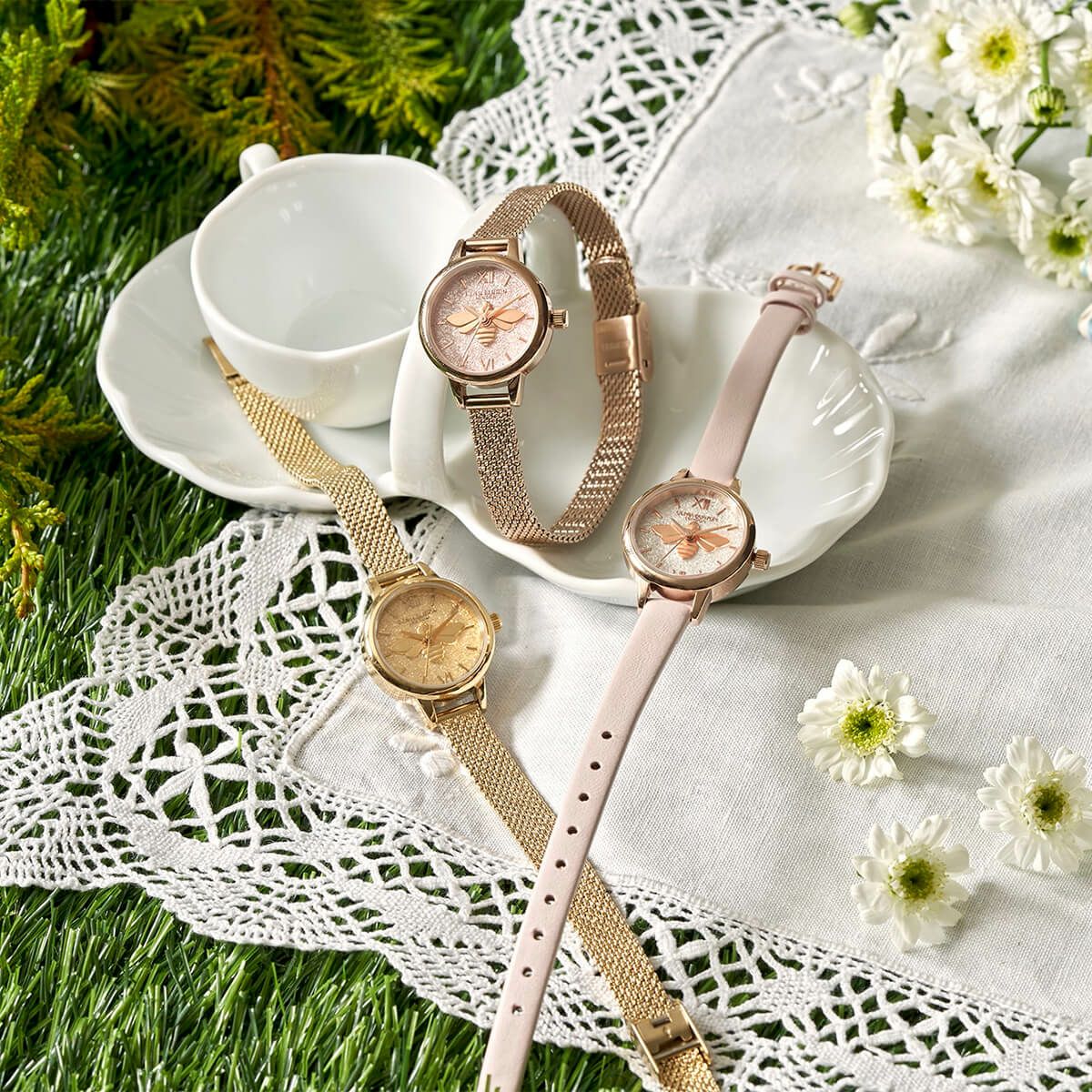 OLIVIA BURTON / オリビア・バートン シグネチャー - ミニ ラッキービー シャンパン グリッター ゴールド メッシュ