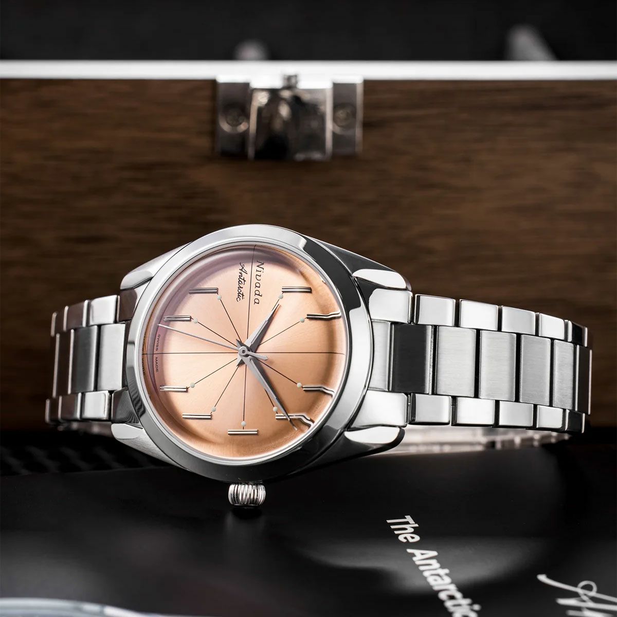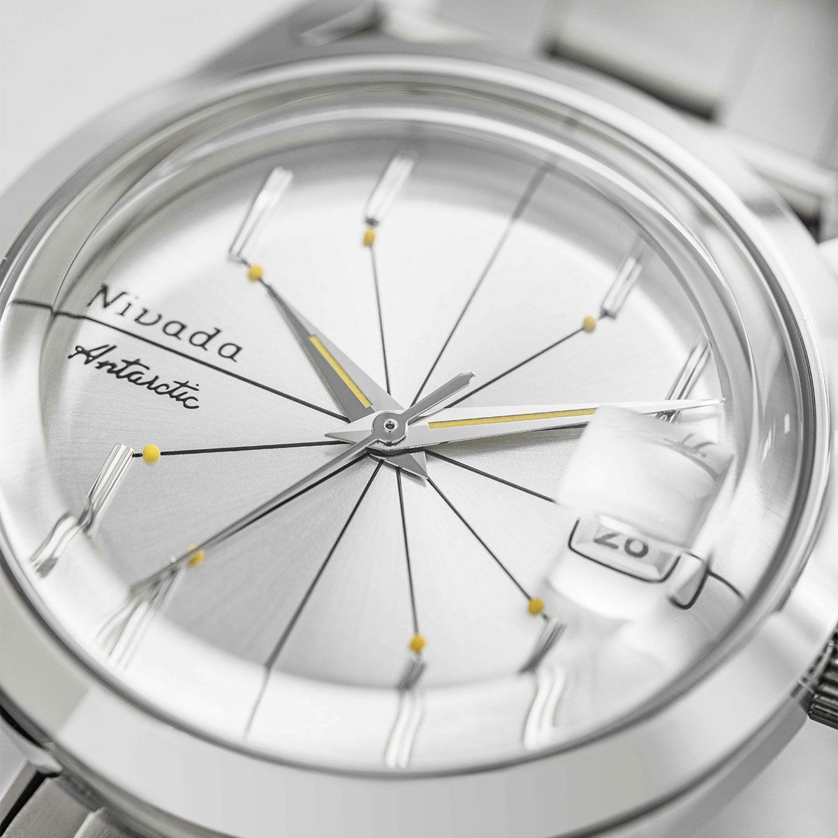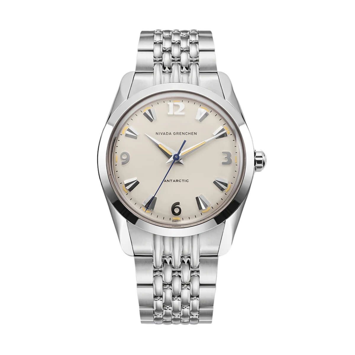 Sold out. 他の画像を見る Nivada Grenchen / ニバダ グレンヒェン アンタークティック 35mm エッグシェル ベージュ ステンレススチール フラットリンク ブレスレット ¥ 189,200 税込