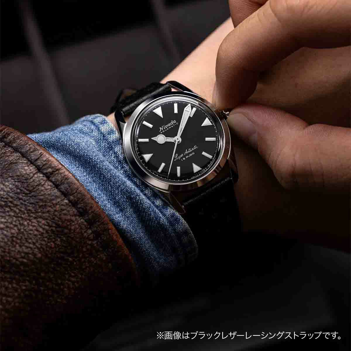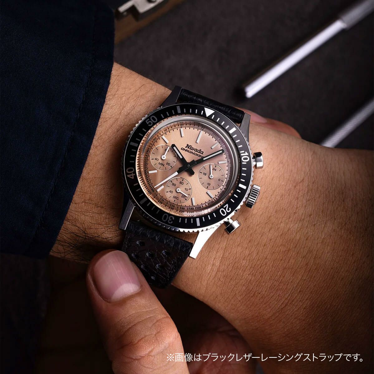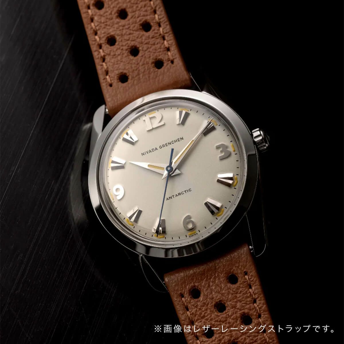 Sold out. 他の画像を見る Nivada Grenchen / ニバダ グレンヒェン アンタークティック 35mm エッグシェル ベージュ ブラック レザー レーシング ストラップ ¥ 159,500 税込
