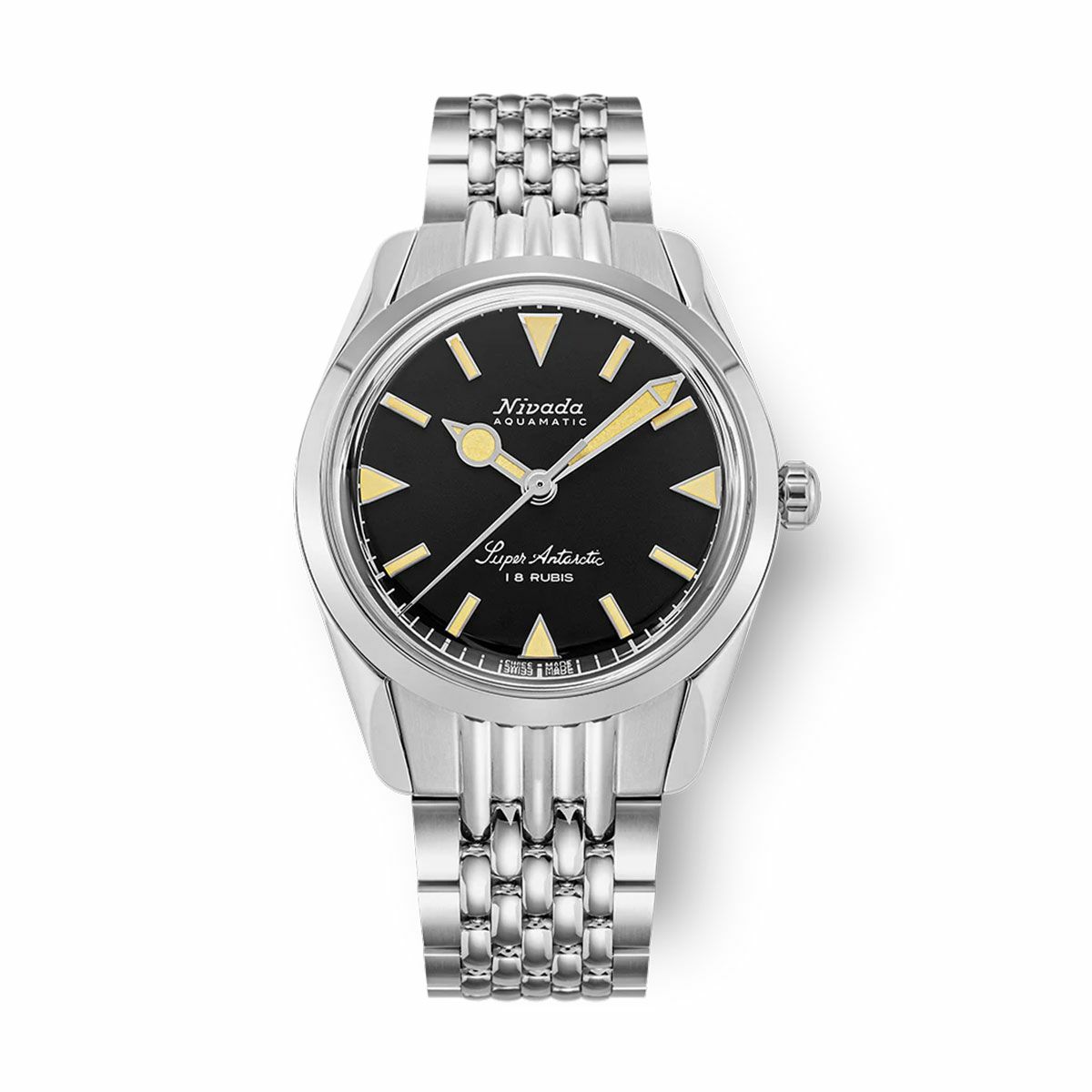 Sold out. 他の画像を見る Nivada Grenchen / ニバダ グレンヒェン スーパーアンタークティック 35mm ブラック ホワイトマーカー ルミノバ ステンレススチール ライスビーズ ブレスレット ¥ 198,000 税込