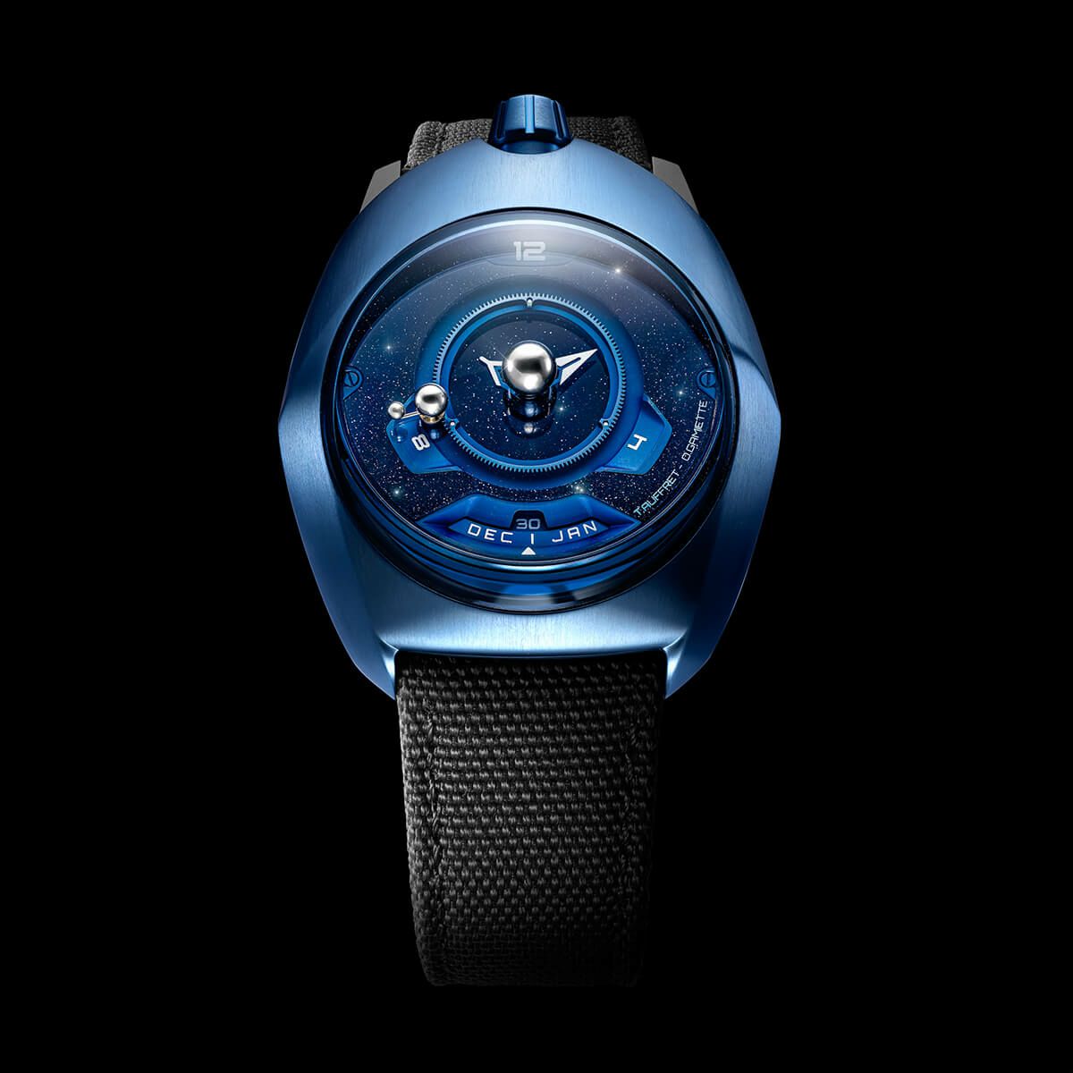 限定 Sold out. 他の画像を見る SPACEONE / スペースワン [世界限定200本]テリリウム アベンチュリン ダイヤル ブルー チタニウム ブラック ファブリック ストラップ ¥ 616,000 税込